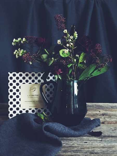 Minin seuraava kysymys oli koska sä äiti taas teet tätä kääretorttua? Totesin että en ihan heti uudestaan; sen verran mittava urakka oli takana. Lakritsaisen makunautinnon saa myös helposti ihan yhdellä pussillisella Fazer lakritsia, kourallisella vadelmia ja iltapäiväkahvilla sohvan pohjalla. Pelkät lakritsimarengit kyllä voisin leipasta ystävälle ruokalahjaksi. Ja jos haluaa ihan oikeasti päästä helpolla tai keksiä jotain ihan muuta kuin tusinalahjaviinipullo, niin kaupasta Fazerin lakritsipaketti ja rusetti ympärille. Kaunis lahja sellaisenaan ja kuka voisi vastustaa pehmeää lakritsia? 🙂