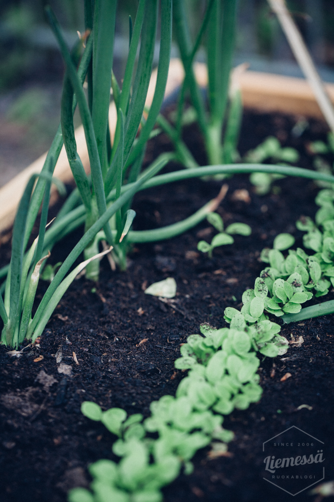 Mistä ruoka tulee? Jos nyt meidän lapsilta kysytään, niin ruoka tulee viljelylaatikoista tarhan pihalta. Omassa lapsuudessani takapihalla kasvoi vähintään raparperia, ruohosipulia ja marjapensaita ja mummolassa koko suku osallistui perunannostoon. Kerrostaloasumisessa kaipaan näitä lapsuuden kokemuksia, joita haluaisin antaa myös omille lapsilleni. Kaikilla kaupungissa kasvavilla lapsilla ei ole mahdollisuutta nähdä mistä ruoka tulee ja kokea itse viljellyn ruoan iloa. Uskon, että itse kasvattamalla lapset myös oppivat arvostamaan ruokaa ja maistelemaan rohkeasti erilaisia kasviksia.
