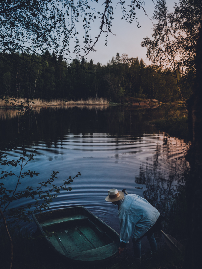 En tiedä mitä taikapölyä oli ilmassa, mutta iltaa kohti paikka muuttui vain maagisemmaksi. Auringon laskiessa ja sumun noustessa veden pinnalle, löysimme soutuveneen. Sellainen  vaan pikku ongelma, että airoja oli yksi kappale.  Veneen liukuessa ympyrää järvellä sai ainakin kauniita panoraamavideoita 😀 Saunan jälkeen korkkasimme longkyröt, otimme rohkaisuryypyt ja jätimme talviturkit hyytävään rantaveteen. Kietouduimme kirpakassa kesäillassa  pyyhkeiden sisään ja istuimme hiljaa parrulla. Näissä maisemissa sielu lepää. Täydellinen viininmaisema!